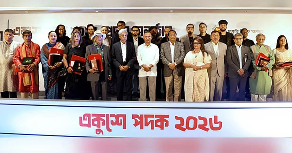 প্রধানমন্ত্রী তারেক রহমান অমর একুশে এবং আন্তর্জাতিক মাতৃভাষা দিবস উপলক্ষে জাতীয় জীবনের বিভিন্ন ক্ষেত্রে অসামান্য অবদানের স্বীকৃতিস্বরূপ আজ নয়জন বিশিষ্ট ব্যক্তি ও একটি সংগীত ব্যান্ড দলকে ‘একুশে পদক ২০২৬’ প্রদান করেছেন। বৃহস্পতিবার সকালে রাজধানীর ওসমানী স্মৃতি মিলনায়তনে যথাযোগ্য মর্যাদায় আয়োজিত এক অনুষ্ঠানে প্রধানমন্ত্রী পদকপ্রাপ্তদের হাতে দেশের দ্বিতীয় সর্বোচ্চ বেসামরিক সম্মাননা ‘একুশে পদক’ তুলে দেন।